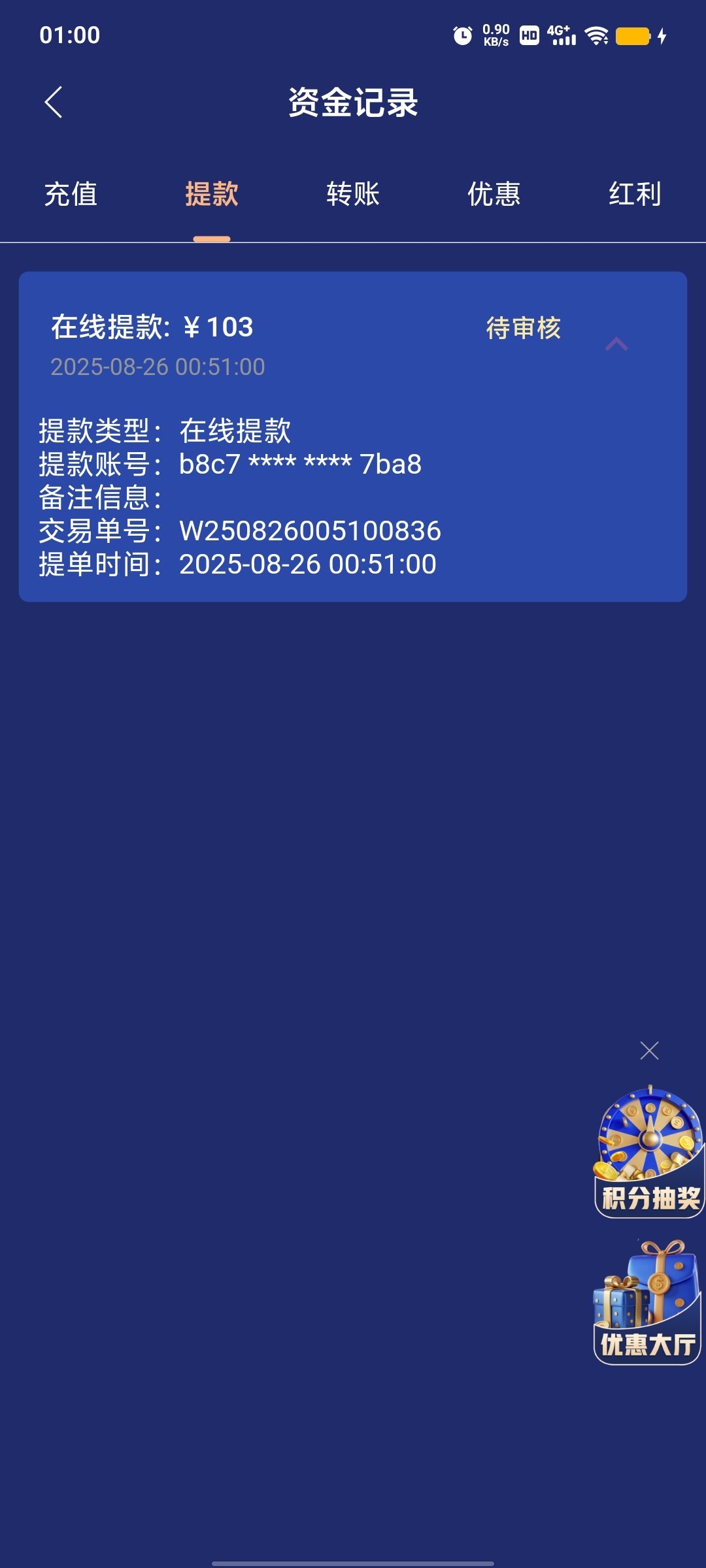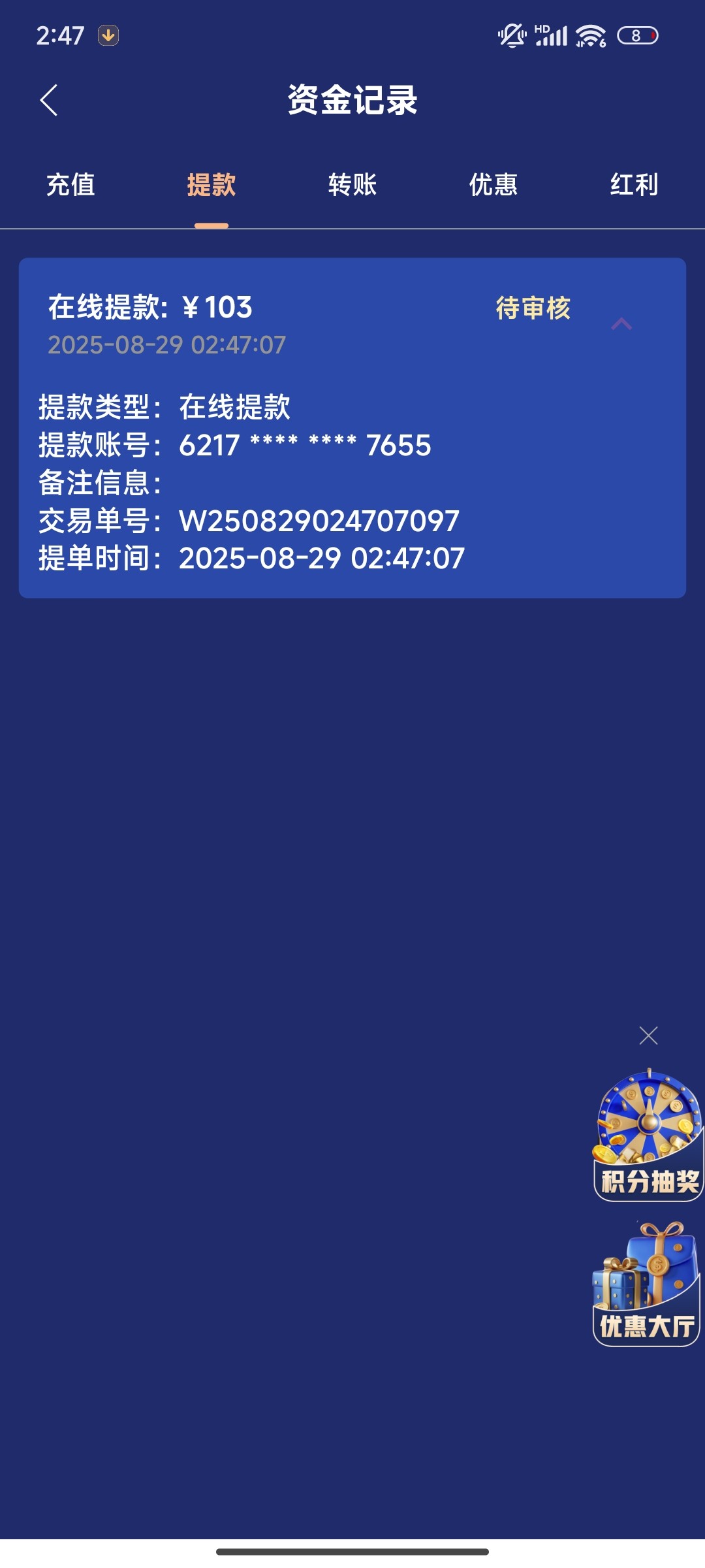 1+1提现有点久,差不多两个小时还没到